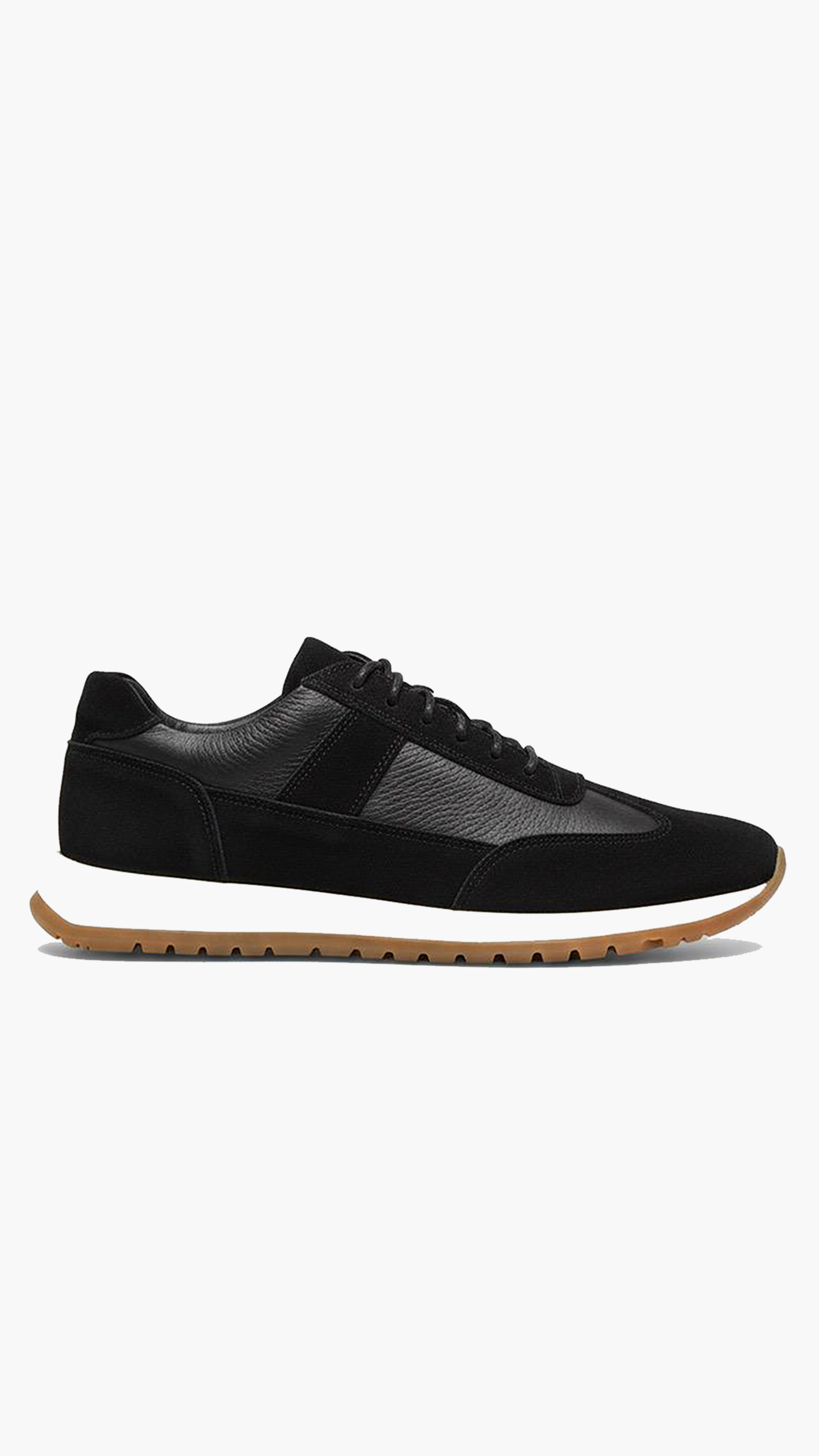 Minimal in form yet rich in texture, the VANTÉ embodies understated power. Crafted in matte black leather and suede with a warm gum sole, it merges sport and sophistication for the man who leads without noise.
